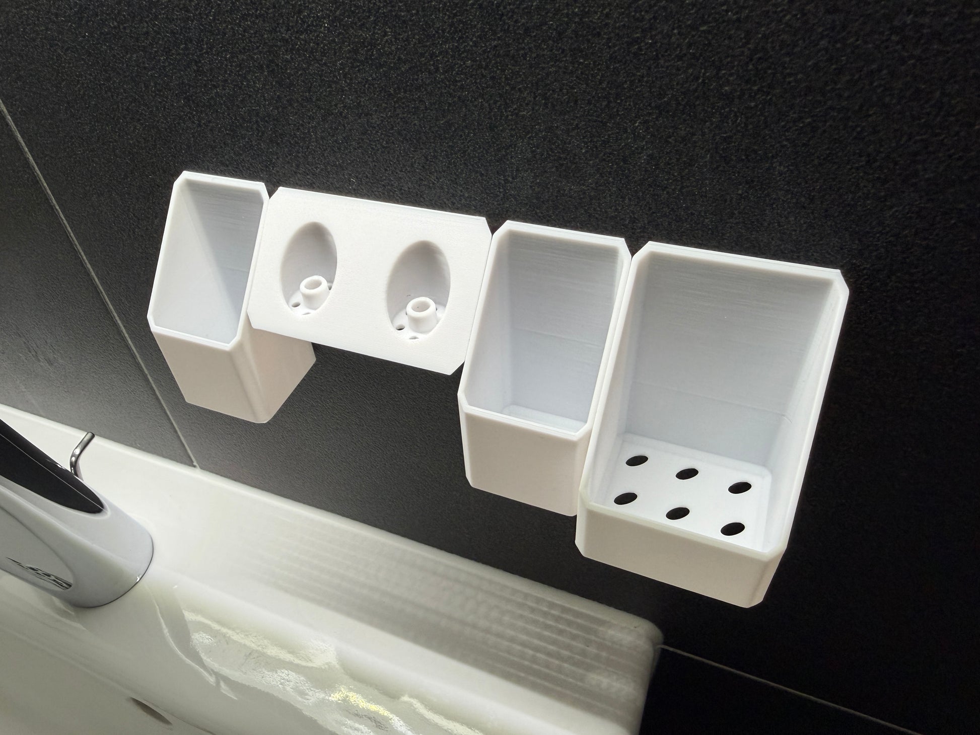 The answer to the daily chaos at the double sink. It offers both partners their own, clearly defined space – for an organized bathroom.